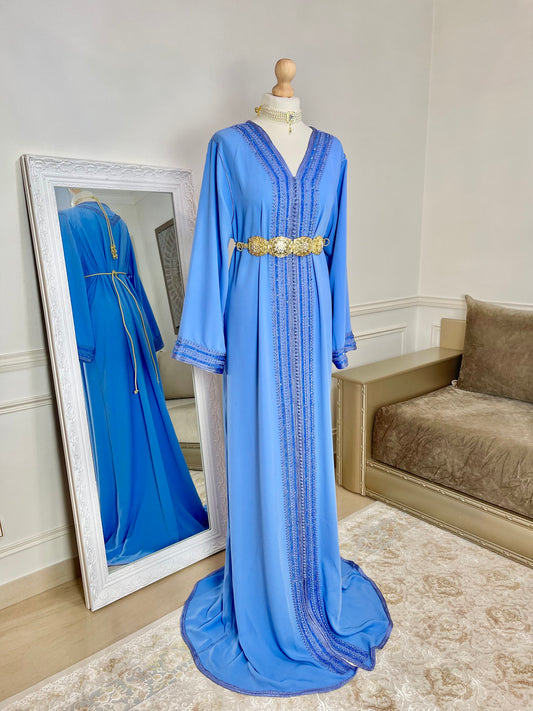 ÉpuiséCaftan Inès bleu clair